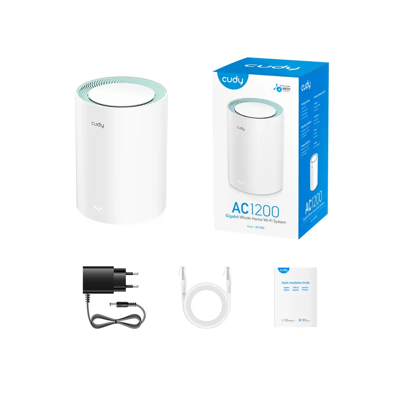 El Cudy M1300 es un sistema Wi‑Fi Mesh AC1200 (Wi‑Fi 5) ideal para mejorar la conectividad en casa o la oficina, eliminando zonas muertas con una única unidad. Su tecnología dual‑banda (867 Mbps en 5 GHz + 300 Mbps en 2.4 GHz), junto a MU‑MIMO y Beamforming, garantiza una señal rápida y estable para streaming, videollamadas y múltiples dispositivos simultáneos.