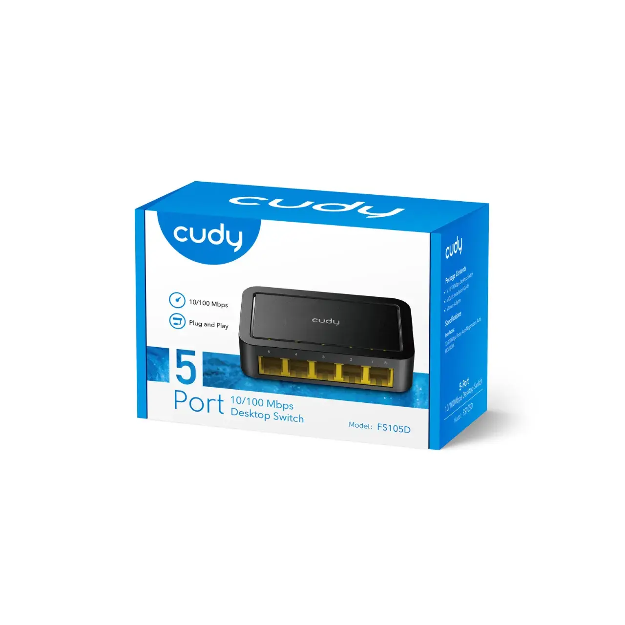 El Switch Cudy FS105D es la solución perfecta para expandir tu red cableada rápidamente y sin complicaciones. Con sus 5 puertos Fast Ethernet (10/100 Mbps) compatibles con cables Cat5e y Cat6, permite conectar múltiples dispositivos como computadoras, impresoras o consolas de forma eficiente.